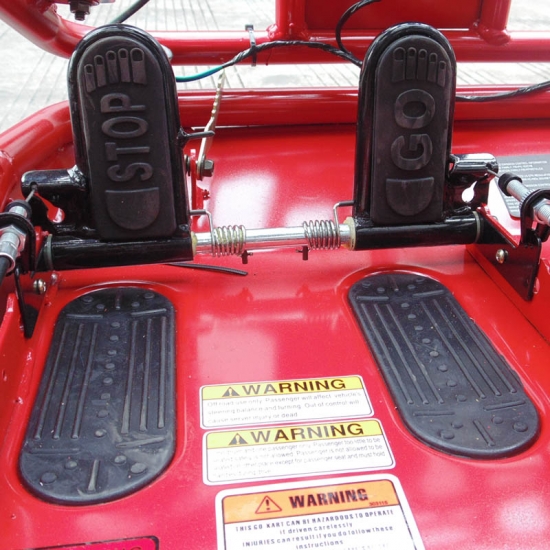 It’s a double seat, full suspension Go Kart equipped with 163cc, 5.5hp engine electric start with pull start back up and features 2-wheel drive and centrifugal clutch, simple in control with stop / go foot pedals. The Transmission is an easy to use Fully Automatic with Reverse with 5-point safety Harness.